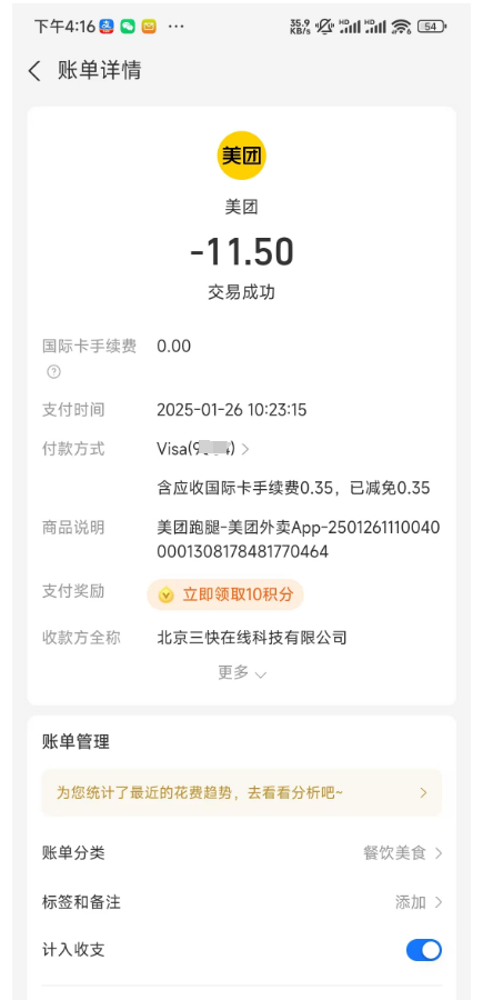 我今天用加密数字货币挣到的一点钱,通过绑定支付宝,在美团上消费了一笔,是一个跑腿订单