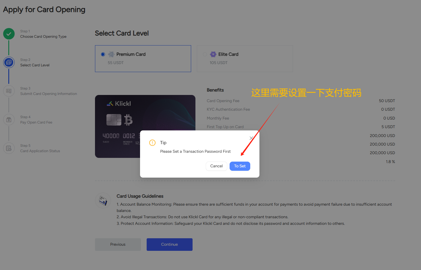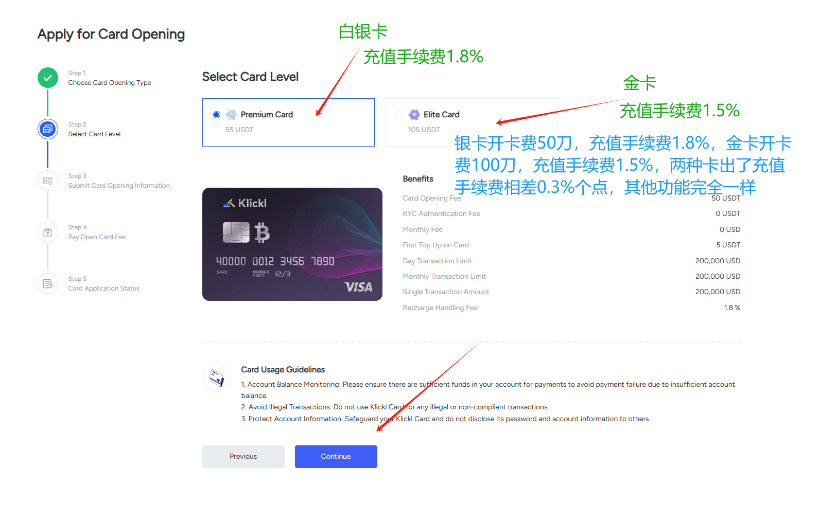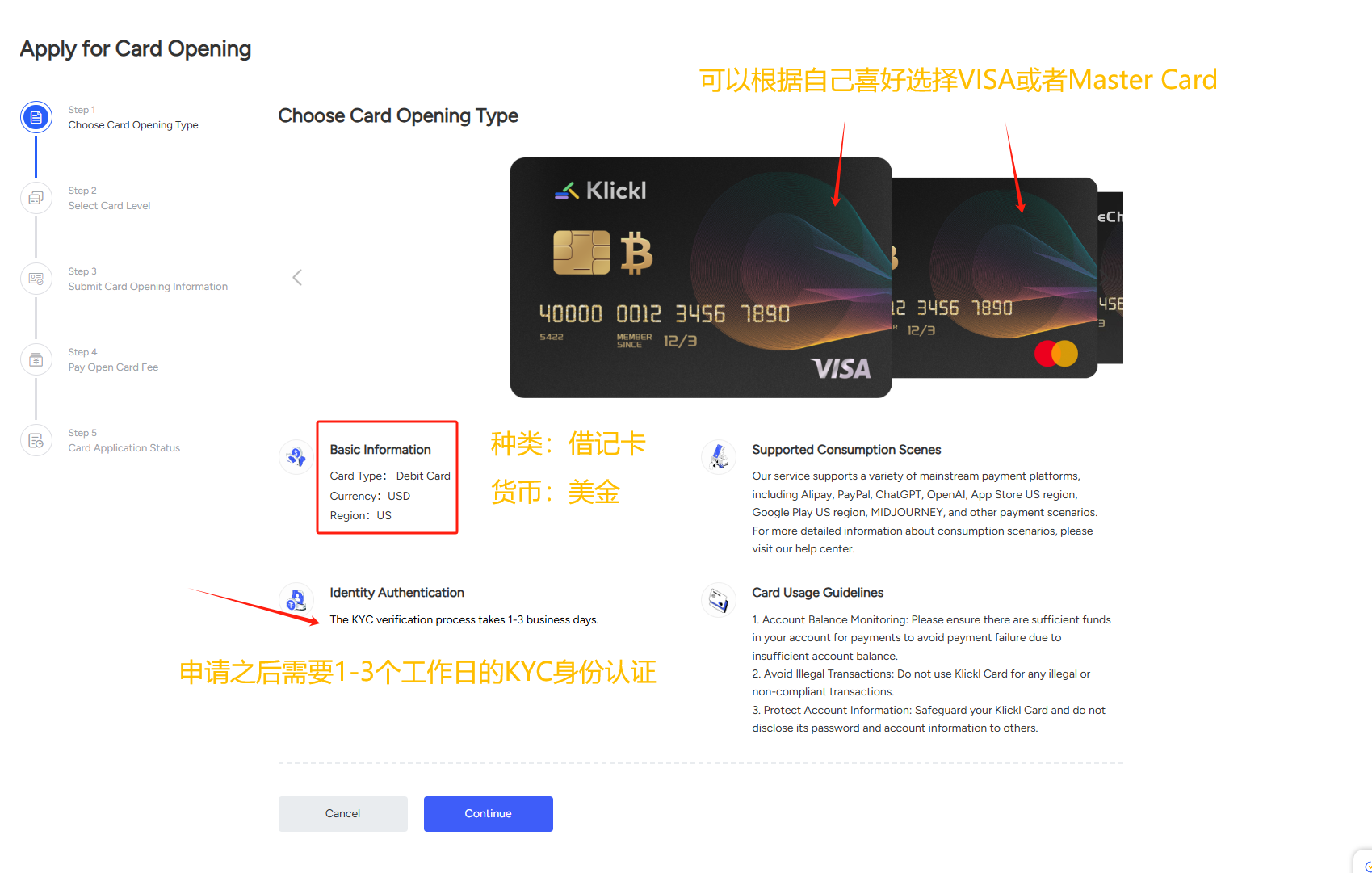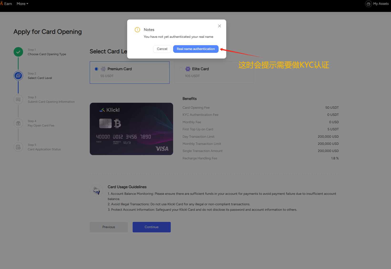 KYC成功之后,就可以充值并开卡了。